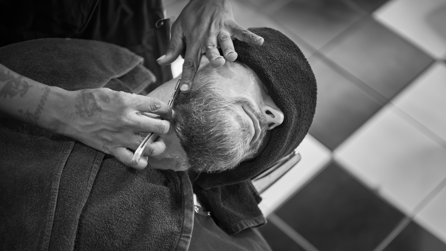 Shampoo and haircut finished with an old-fashioned, hot lather straight-edge shave.