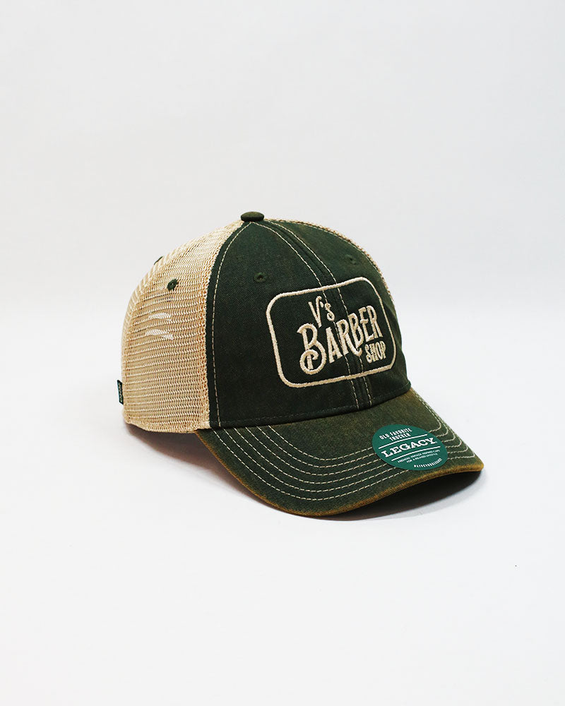 V's BARBERSHOP STACKED LOGO PATCH TRUCKER HAT - GREEN